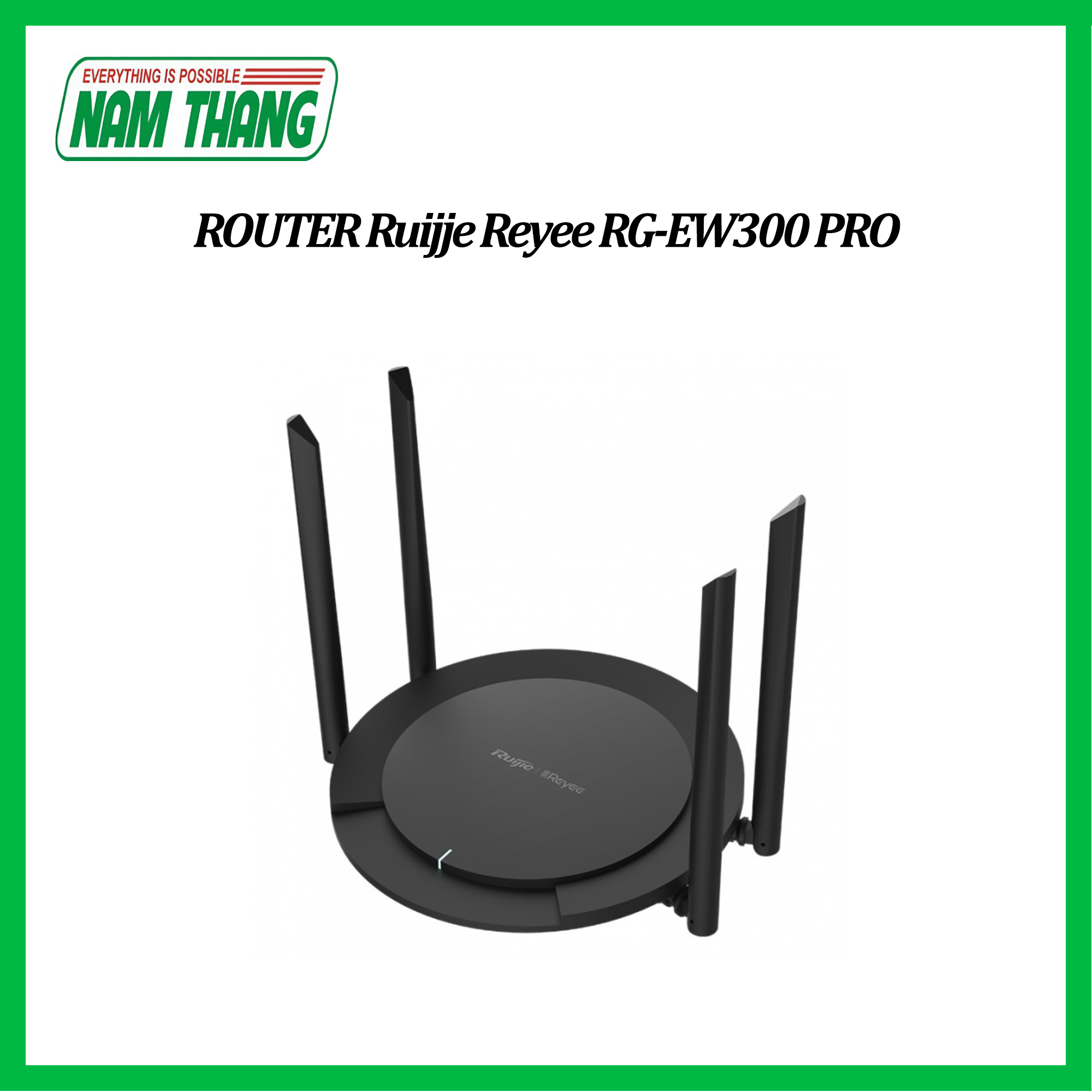 RUIJIE RG-EW300 PRO là bộ định tuyến thông minh không dây, dùng cho Biệt thự, Căn hộ cỡ lớn, Bungalow), văn phòng SOHO, cửa hàng nhỏ, … Cấu hình thân thiện với người mới sử dụng, kết nối với internet bằng một vài cú nhấp chuột.