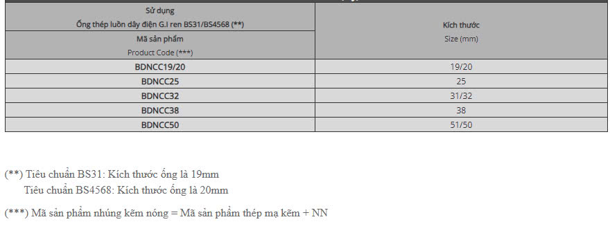 Đầu nối ống ruột gà và ống thép luồn dây điện G.I ren BS kín nước – Việt Nam - Thiết Bị Viễn Thông Nam Thắng