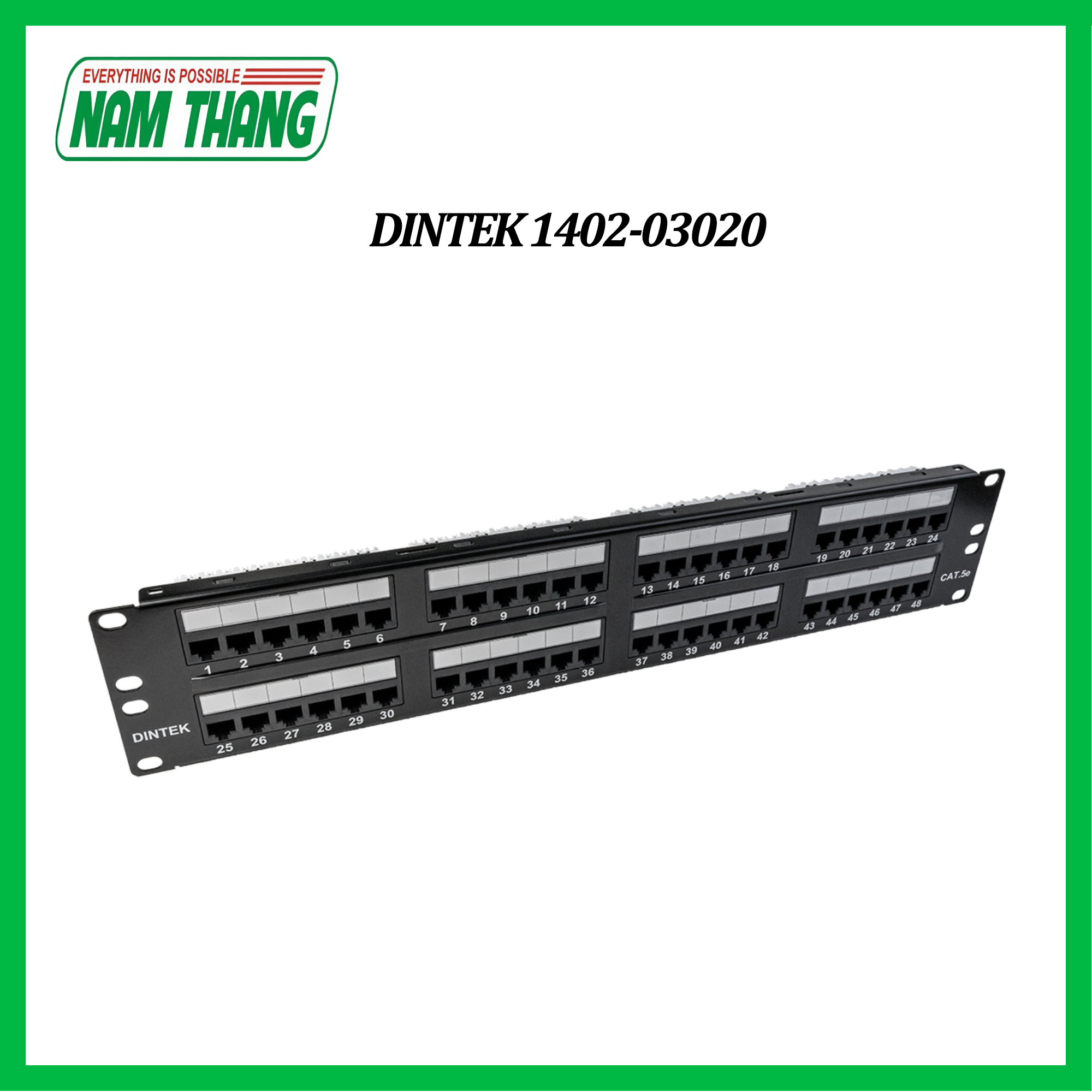 DINTEK Patch Panel Cat.5e UTP 2U 48P 19inch là sản phẩm của thương hiệu DINTEK, nhà cung cấp vật tư mạng hàng đầu thế giới. DINTEK Patch Panel Cat.5e UTP 2U 48P 19inch là bản cắm mạng bao gồm 48 port, chuyên dùng cho Cat.5 UTP. Sản phẩm được thiết kế để mang lại hiệu suất cao, độ bền và dễ dàng lắp đặt. Phù hợp với các tiêu chuẩn TIA và ISO được công bố mới nhất. Với kích thước 19 inch phù hợp với đa số các tủ rack hoặc ODF hiện nay. Mặt trước bao gồm các các chân cắm mạng và ô cho phép đánh số để dễ dàng quản lý.
