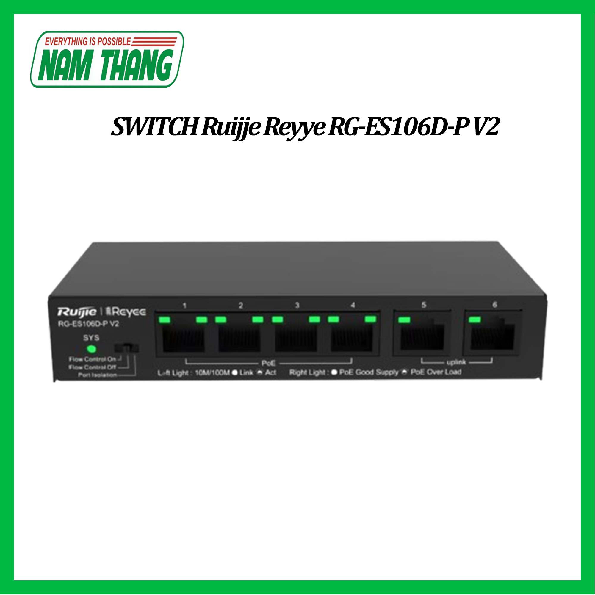 Switch PoE Ruijie RG-ES106D-P V2 - Thiết Bị Viễn Thông Nam Thắng