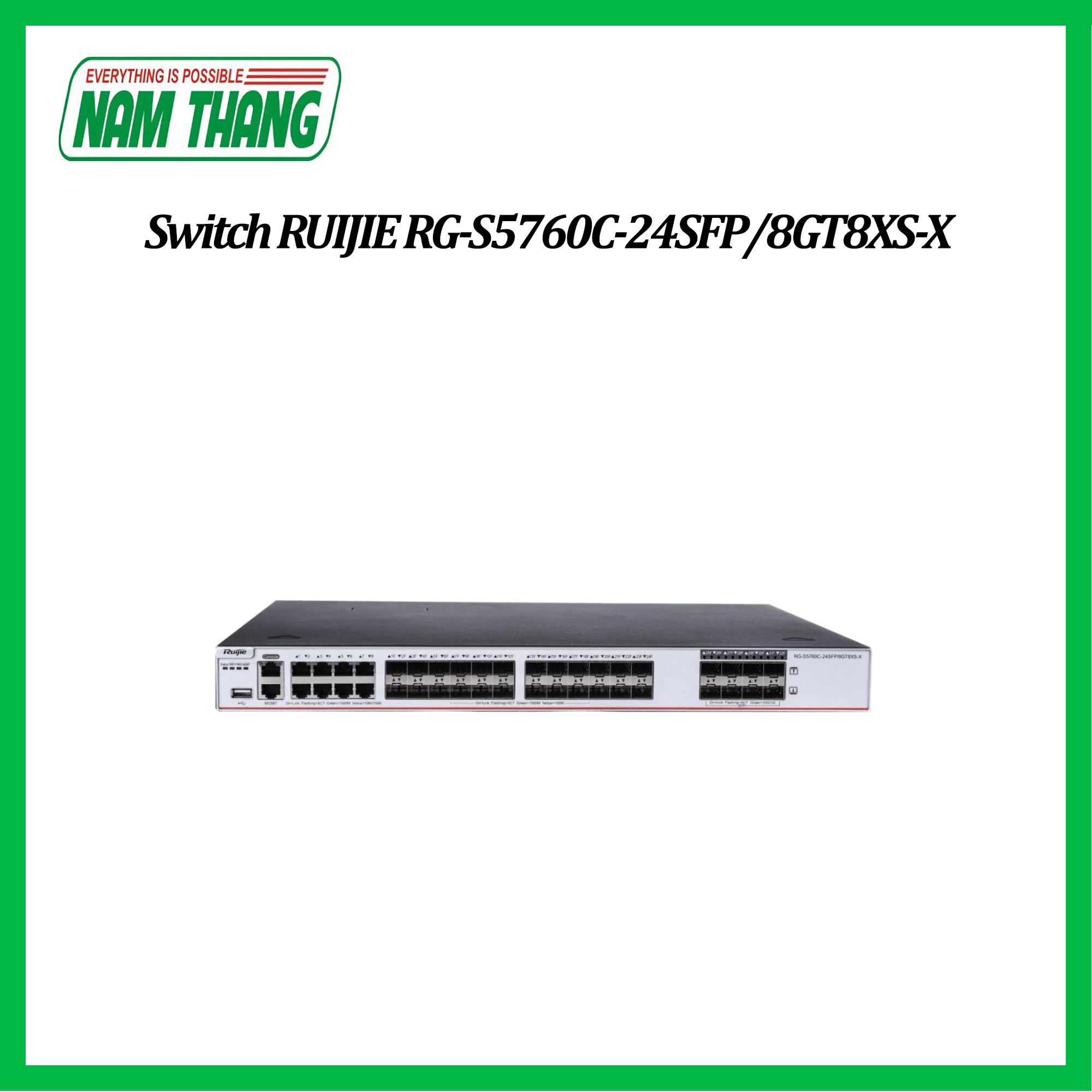 RG-S5760C-24SFP/8GT8XS-X Bộ chuyển mạch Ruijie RG-S5760-X là bộ chuyển mạch Ethernet thế hệ tiếp theo có hiệu suất cao và dung lượng lớn. Các thiết bị chuyển mạch sử dụng chip thế hệ mới cùng với hệ điều hành mô-đun RGOS12.X mới nhất của Ruijie để cung cấp dung lượng đầu vào lớn hơn, xử lý phần cứng nhanh hơn và trải nghiệm người dùng tốt hơn.